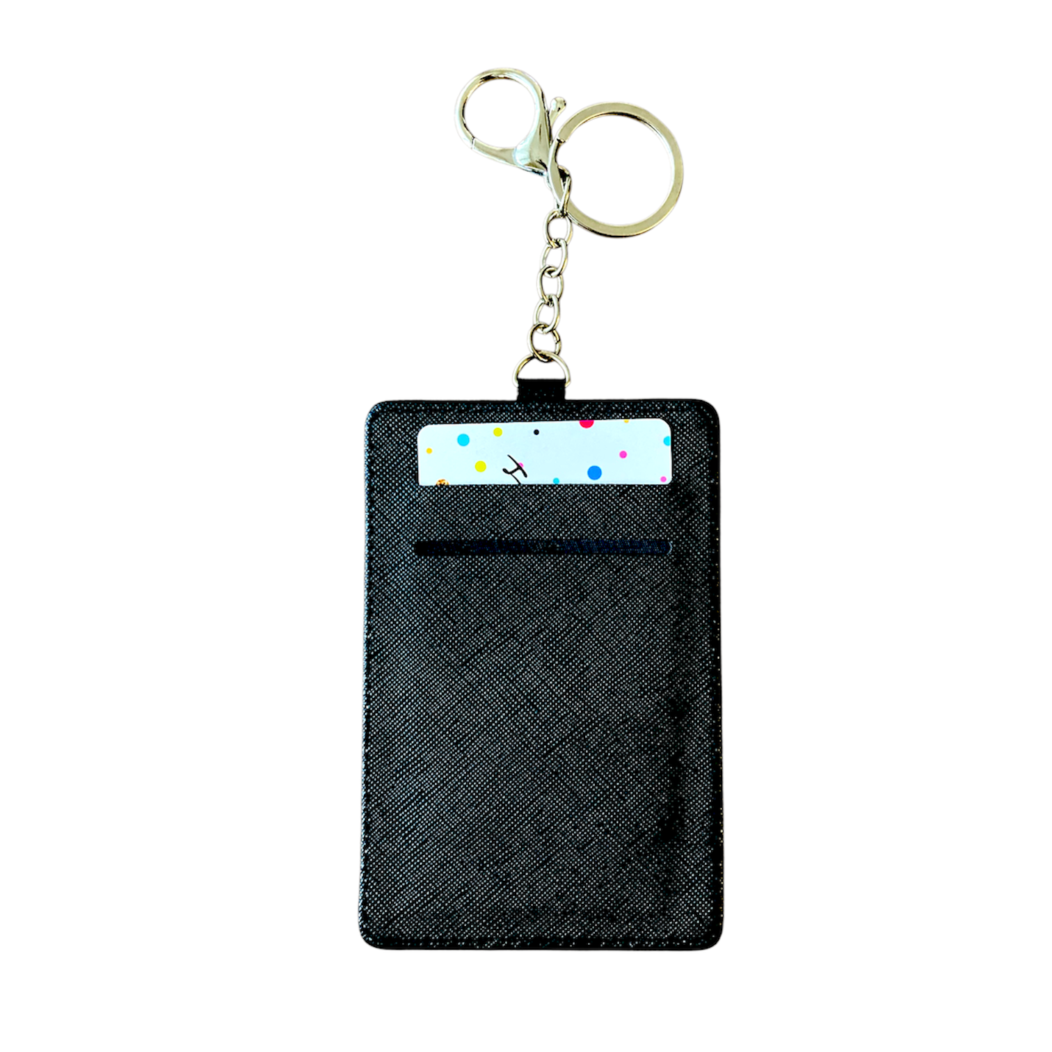 • 裏地(黒色の部分): フェイクレザーを使用しており、適度なハリ感を持たせています。裏側には、カードを2枚収納できるポケットが付いており、実用性にも配慮しています。