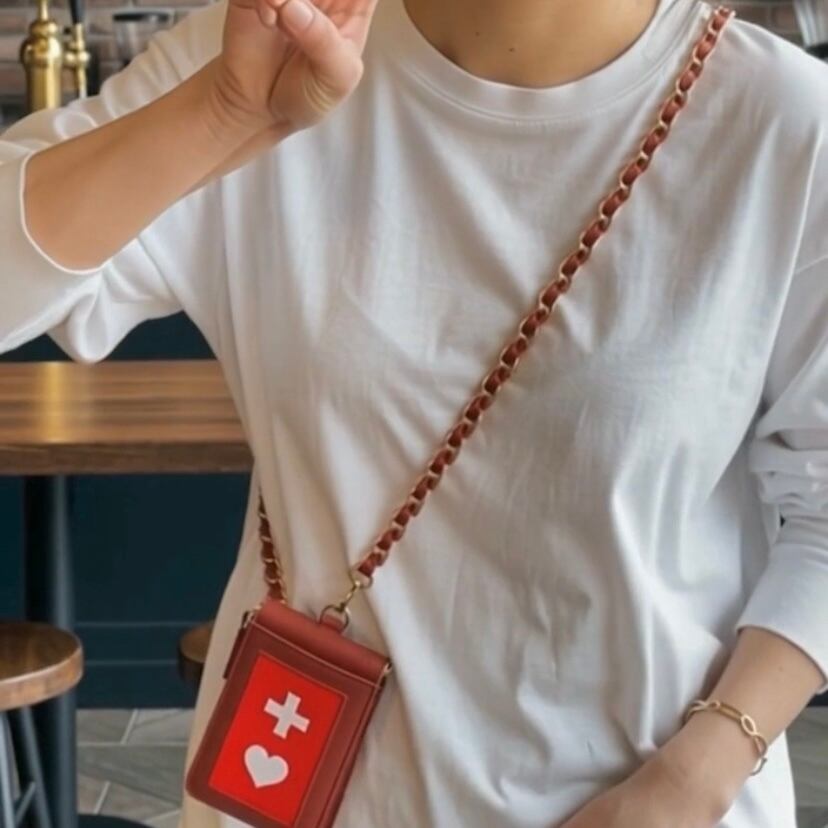 “予約商品”Red echo leather お財布機能付き ショルダー(斜めがけカードケース)