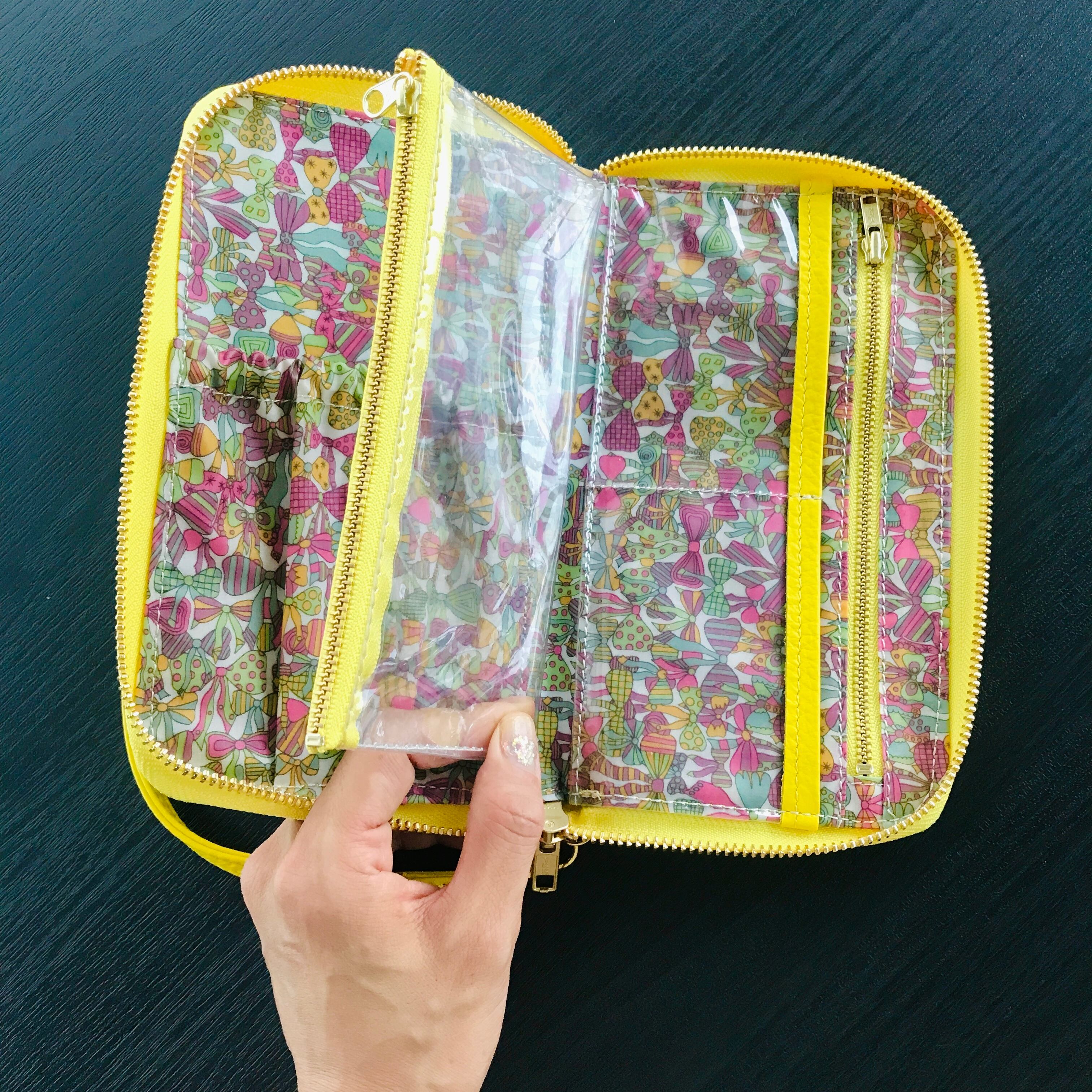 カード入れ等のポケットと内袋は透明の仕様になりました。