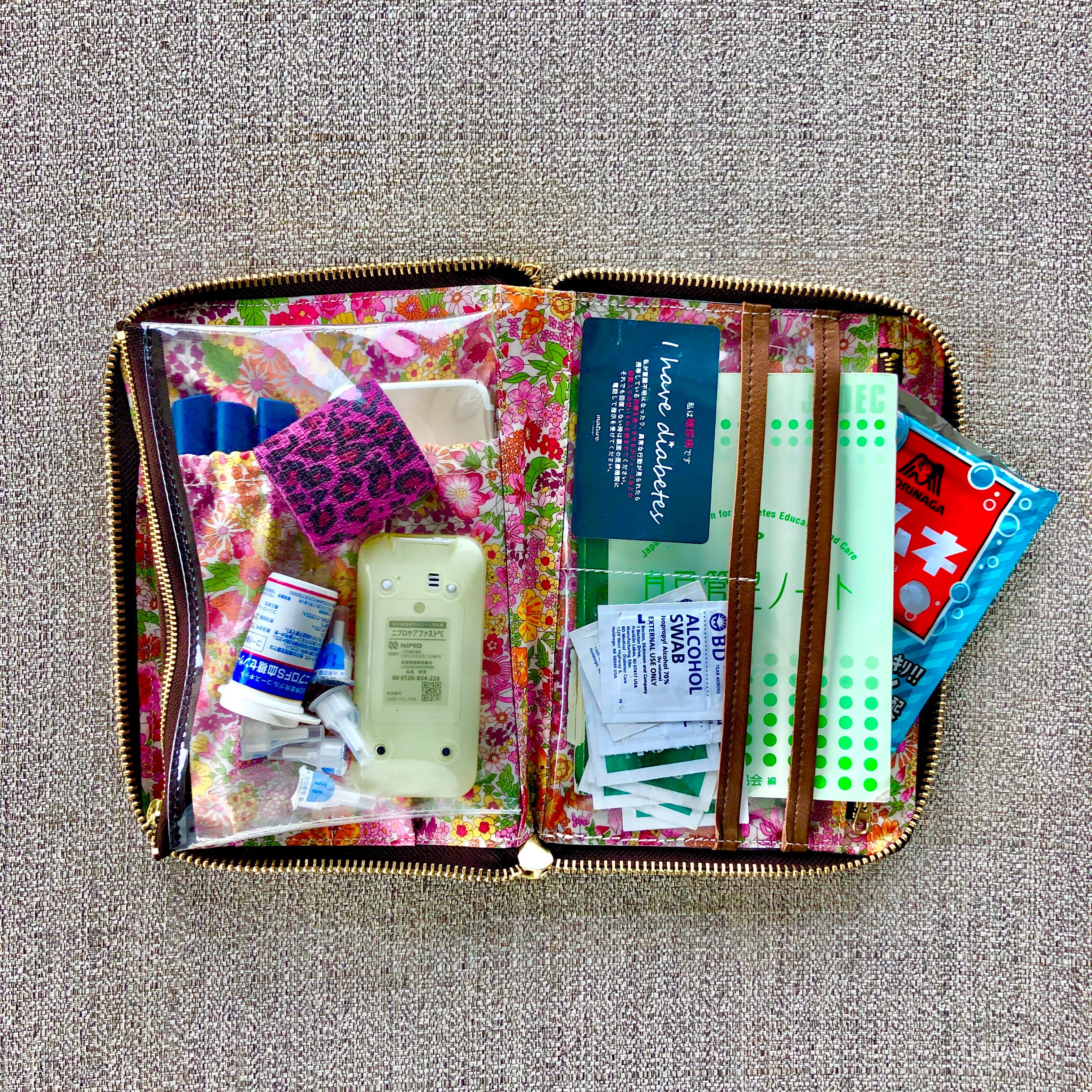 通常の革の財布の様な固い芯があると、注射器や測定器が入りませんでした。そこで芯を抜き、出来るだけコンパクトに沢山入るよう改良しました。