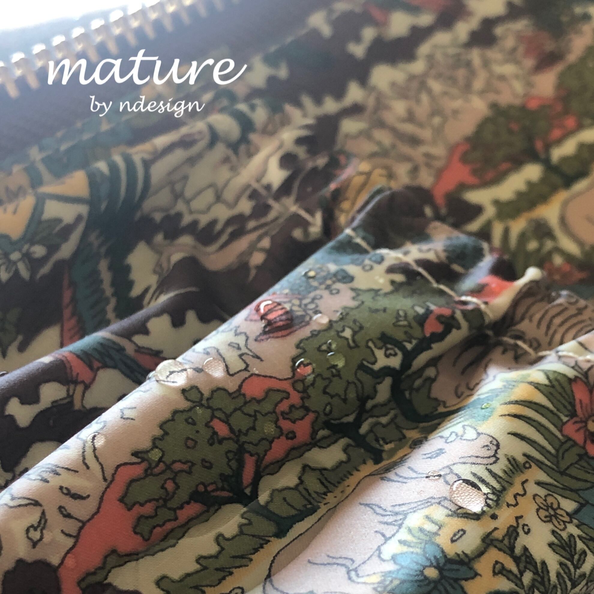 シンプルで高級なレザーのバッグを開くと素敵で明るい上品なリバティ柄に嬉しい気持ちになります。