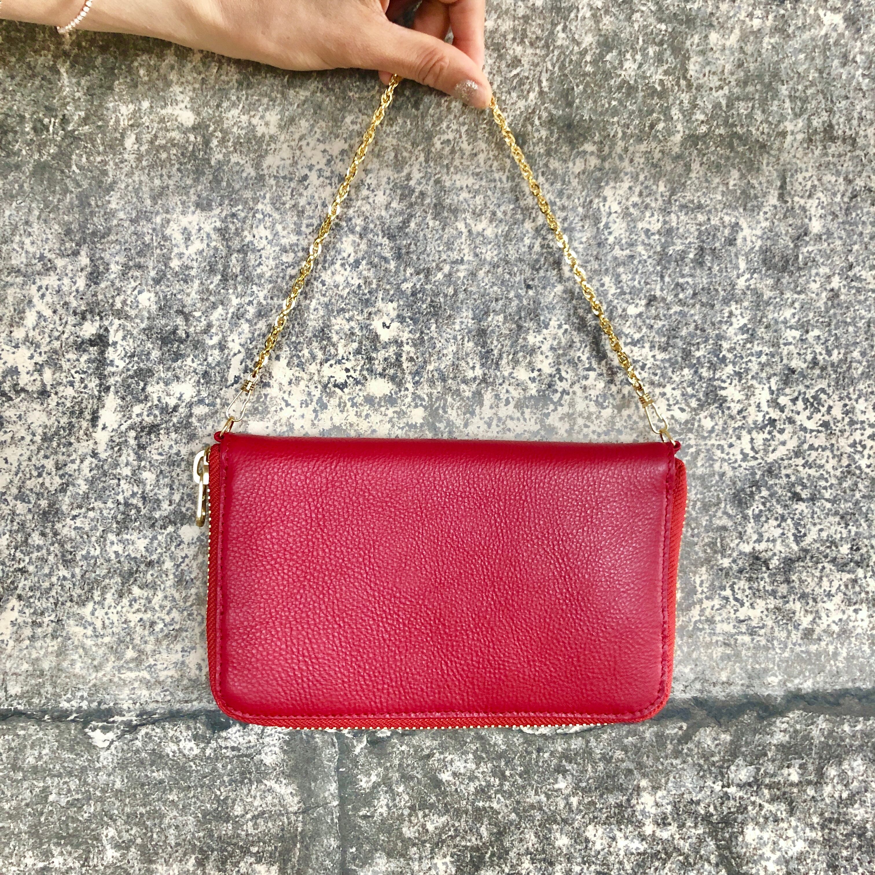 It has a chain that can be carried a little, and does not disturb the bag. As we can shoulder, both hands are available and are convenient.