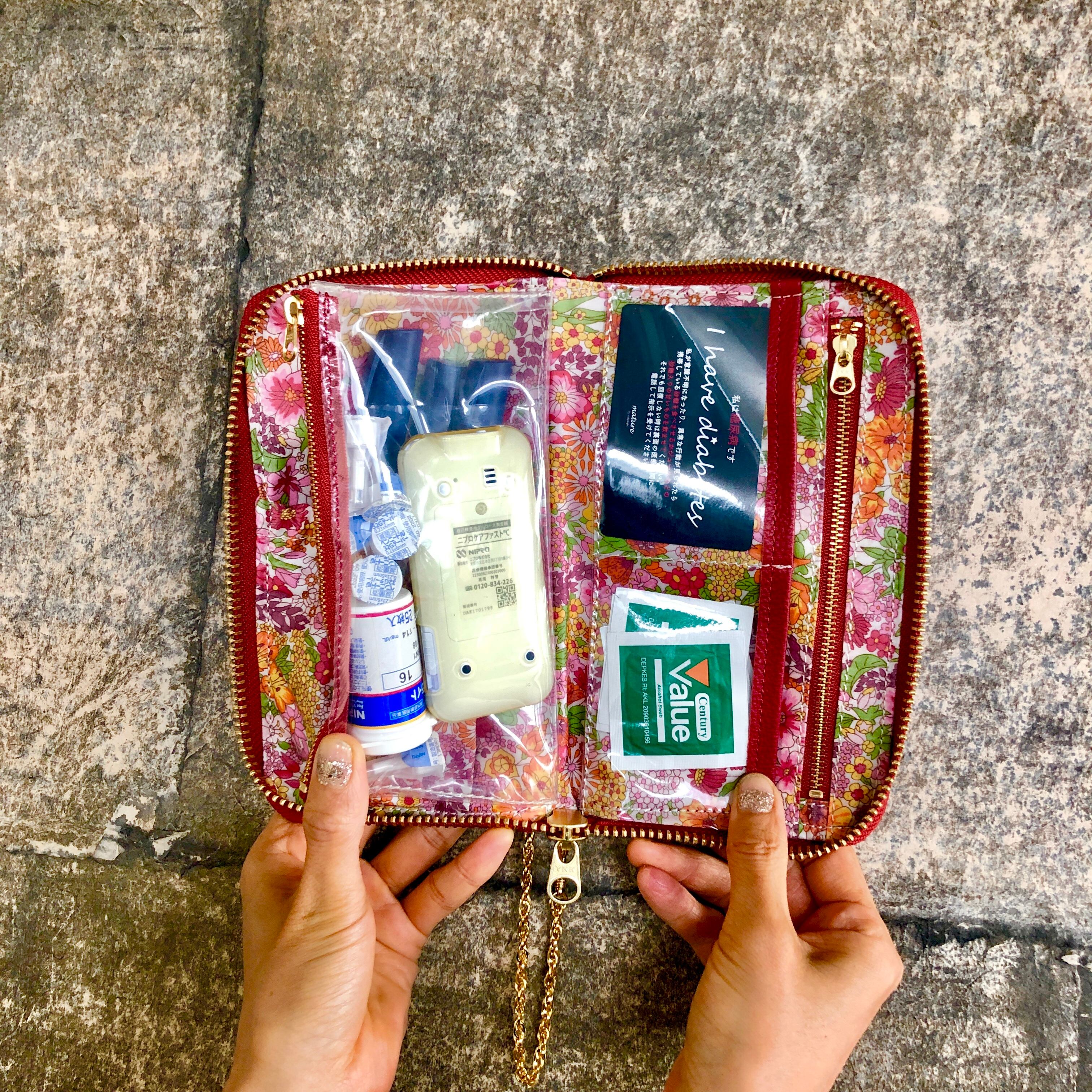 通常の革の財布の様な固い芯があると、注射器や測定器が入りませんでした。そこで芯を抜き、出来るだけコンパクトに沢山入るよう改良しました。