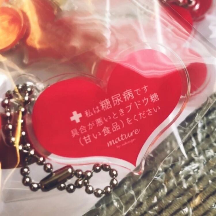 ピンク・ハート・キーホルダー 万一の時に糖尿病患者であることが分かるキーホルダーです。(1型との記載なし) 目立ち過ぎず、可愛くていざというときに安心のキーホルダーです。